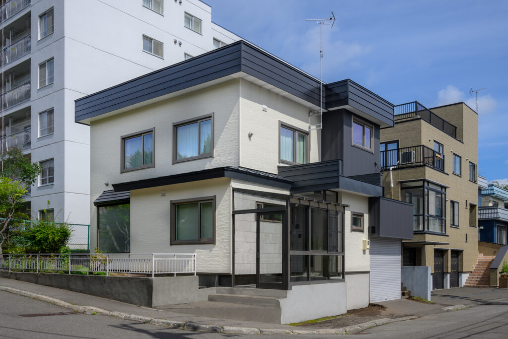 外部工事のご相談をいただき、複雑な屋根形状の変更、外観のイメージアップ、雨・雪問題の解決、さらに補助