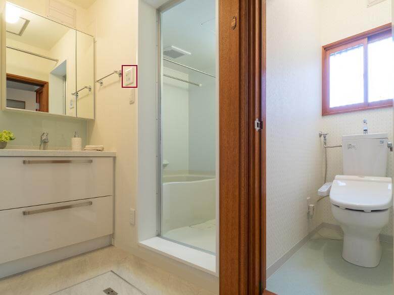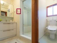 | また、各所水廻りには水抜き栓が床から立ち上がっており、冬期の水抜作業も大変なので、ワンタッチ操作で水の凍結を防ぐ電動水抜栓開閉装置を洗面・脱衣所に取付。(写真:右) | |