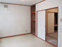 | ■リビング横洋室 天井まである収納だが上段の棚は奥行きがあり、出し入れ困難。また扉もなく見栄えも良くない。 |