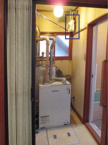 ★ 昭和54年頃の住宅ですと、室内に都市ガスのメーターがあり(写真:脱衣所上部) 毎月のメーター検針もわずらわしさがあることから、外部に移設をしました。(写真:右) |