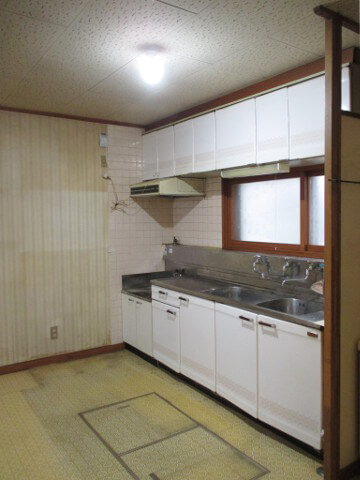| ■独立型のダイニング・キッチン。ガス炊飯器用のガス栓があり、懐かしい雰囲気の台所 | |